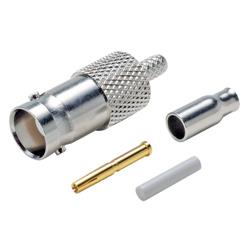 此款母头BNC射频连接器专门用于使用标准压接尺寸的易用压接工具压接广泛使用的RG174、RG188和RG316型同轴线缆:0.178适合压接套管。中心触点专门用于与同轴线缆中心导线焊接在一起。BNC连接器连接扭锁,因而特别适合射频应用。