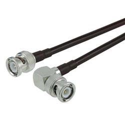 High quality fully tested BNC Male to BNC Male cable assemblies featuring high performance low loss 195-series coax cable. Types include straight and right angle BNC connectors.