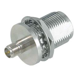 此款N型穿壁式母头转反极性SMA插座(RP-SMA)同轴线缆转接器能够将N型公头接口与反极性SMA插头接口相连。
