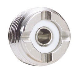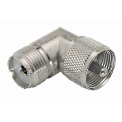 此款直角UHF公头转母头转接器外型轻巧,特别适合空间有限的应用。此款转接器也可以用于通过连接线缆端将直线型UHF公头线缆连接器改成90度结构。