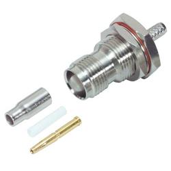 该TNC母头穿壁式连接器特别专门用于压接RG174/188/316线缆。连接器机身和连接螺母通过机加工和镀镍来获得卓越的抗腐蚀性和耐久性。中心引脚镀金,降低接触电阻。还提供硅橡胶O型环以防潮。