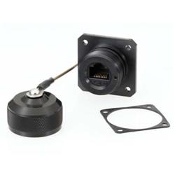 超5类RJ45插座,加固型法兰安装,阳极化抛光,配备防尘帽