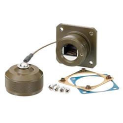 超5类RJ45插座,加固型法兰安装,锌镍抛光,配备接地屏蔽、安装硬件和防尘帽