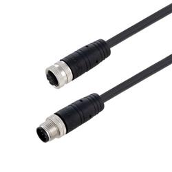 M12 8 Position A-code Industrial Outdoor Assembly, PUR Jacket, M/F, Black, 10.0M
