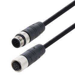 M12 8 Position A-code Shielded Industrial Outdoor Assembly, PUR Jacket, M/F, Black, 5.0M