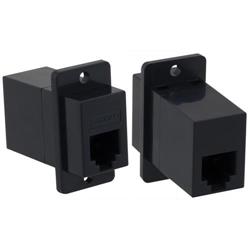 L-com's exclusive line of category 3 panel mount connectors is the perfect choice for passing modular cables through a rack panel or wall plate. The unique flange mount design accepts #4 or #5 screws for secure mounting of these couplers to any panel (purchased separately). Contacts have 30 microinches of gold plating for durability and the black plastic shell is UL94V-0 rated. With a category 3 rating these couplers can be used for either voice or data applications. Large volume discounts offered; Call today.