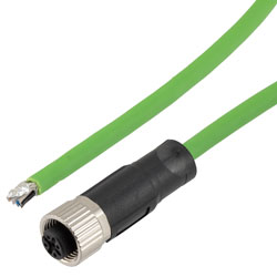 垂询电话: 电子邮箱: 描述L-com的TRGA505S-P2N-1M是一款M12 A编码5针传感器/执行器信号线缆,长度为1米。该线缆的M12接头采用带螺纹的牢固结构,可有效防止意外断开。为了方便直接接入接线端子,这款带屏蔽的线缆组件一端为母头连接器,另一端为散线端(开放式)。这款5针线缆适用于测试设备、输入/输出(I/O)连接、工业控制和工厂自动化等领域,包括移动式和固定式拖链、DeviceNet、IO-Link和 Profibus等应用。 L-com的这款TRGA505S-P2N-1M传感器/执行器信号线缆为绿色,导体规格为22AWG,外护套采用拖链等级的聚氨酯(PUR)材料。工业级拖链护套确保了线缆在反复弯曲和摩擦下依然耐用,而普通PVC线缆则容易在这种环境下损坏。我们的5针传感器线缆具备IP67防水防尘性能,在正确对接后能有效抵御液体和颗粒物的侵入。该线缆组件用于连接采用5针A编码(单键槽)接口的 M12设备,例如传感器和执行器。 我们的M12母头转散线式拖链线缆可承受每米180°的扭转应力,柔韧性极佳。该传感器/执行器信号线缆的动态弯曲半径为其外径的15倍,静态弯曲半径为其外径的8倍。L-com的TRGA505S-P2N-1M A编码5针屏蔽线缆能够为工厂自动化设备提供安全、坚固且防水的连接。有关该防水线缆组件的更多尺寸和详细规格,请参阅可下载的PDF产品说明书。 L-com 现货供应种类齐全的M12母头转散线式线缆组件,支持国内外订单。立即通过官网下单,即可享受我们工作日当天发货的服务。如需了解类似产品信息,我们专业的技术支持团队和经验丰富的销售团队将随时为您提供帮助,助您找到最符合需求的A编码5针拖链线缆。 特征