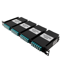 L-com的FSP-MPM-4L1S-96LCM3为一款带有4个LGX接线盒的推拉式配线架,每一接线盒均有分别用于单根光纤连接的24个LC端口,共可连接96根光纤。此外,每一接线盒的后端还有两个用于连接MPO跳线的带导针12芯MPO公头连接器。该款多模型号针对OM3 50/125 10G级应用设计,极其适用于架装或墙装光纤接线盒内的连接。L-com的MPO产品与US Conec MTP产品完全兼容。