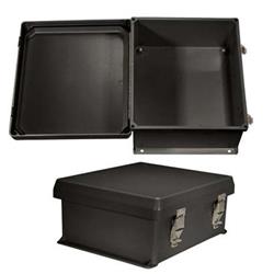 The NBB121005 is a UL® Listed rugged weatherproof enclosure that is ideal for both indoor and outdoor applications. Constructed from molded halogen free self extinguishing fiberglass reinforced polyester, it is well suited for high temperature or corrosive environments. The integral mounting flange allows it to be wall mounted as well as on a flat surface. The fully gasketed lid features a stainless steel continuous hinge and a stainless steel quick release latch with padlock hasp. The fully gasketed lid features a stainless steel continuous hinge and stainless steel quick release latches with padlock hasps. The black color of the NBB series makes these enclosures ideal for security and surveillance equipment since they blend in easier with existing municipality landscapes. The contoured body provides an attractive and contemporary appearance. The NBB121005 is ideal for custom applications, which may require special modifications to the enclosure. Contact L-com with your custom requirements and let us provide it for you. Integral mounting stand-offs inside the enclosure can be used for mounting plates. Blank and custom mounting plates are available from L-Com. For additional information and complete specification, click on the Data Sheet link in the Downloads tab. 特征