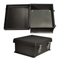 The NBB121005 is a UL® Listed rugged weatherproof enclosure that is ideal for both indoor and outdoor applications. Constructed from molded halogen free self extinguishing fiberglass reinforced polyester, it is well suited for high temperature or corrosive environments. The integral mounting flange allows it to be wall mounted as well as on a flat surface. The fully gasketed lid features a stainless steel continuous hinge and a stainless steel quick release latch with padlock hasp. The fully gasketed lid features a stainless steel continuous hinge and stainless steel quick release latches with padlock hasps. The black color of the NBB series makes these enclosures ideal for security and surveillance equipment since they blend in easier with existing municipality landscapes. The contoured body provides an attractive and contemporary appearance. The NBB121005 is ideal for custom applications, which may require special modifications to the enclosure. Contact L-com with your custom requirements and let us provide it for you. Integral mounting stand-offs inside the enclosure can be used for mounting plates. Blank and custom mounting plates are available from L-Com. The NBB121005-KIT includes a Blank Aluminum Mounting Plate permitting free form layout of equipment. The Enclosure and Mounting Plate combination is ideal for custom applications. Mounting stand-offs inside the enclosure are used to secure the Mounting Plate. For additional information and complete specification, click on the Data Sheet link in the Downloads tab. 特征