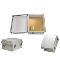 Start with the Box... The box is a rugged weatherproof NEMA Type 4X insulated enclosure that is ideal for both indoor and outdoor applications. Constructed from molded fiberglass reinforced polyester, it is well suited for hot or cold temperatures. The mounting flange allows it to be wall mounted as well as on a flat surface. The raised lid features a stainless steel continuous hinge and stainless steel quick release latches with padlock hasps. The raised lid is fully gasketed. The enclosure material is UV stabilized and comes in machine tool gray. Sub-zero Applications The NB141207-4H0N enclosure is designed for use in sub-zero environments down to -30°F (-34°C). It features a 48 VDC thermostat controlled heating system that will along with the heat generated by an internal device such as an access point, maintain a nominal internal ambient temperature of +40°F (4°C). A single CAT5 cable provides power to the heating system from a remote mounted DC Injector and Power Supply which are included with the enclosure. An additional CAT5 cable would then be used to supply data and power to installed PoE equipment. Mounting Plate The aluminum mounting plate has provisions to mount WLAN equipment from Cisco®, Symbol®, D-Link®, HyperLink and more. With the optional HGX-AMOUNT02 bracket a wide array of HyperLink Amplifiers, Power-Over-Ethernet products and Power Supplies can be mounted as well. Two of these brackets can be mounted side by s 特征