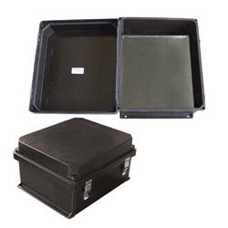 The NBB141207 is a UL® Listed rugged weatherproof enclosure that is ideal for both indoor and outdoor applications. Constructed from molded halogen free self extinguishing fiberglass reinforced polyester, it is well suited for high temperature or corrosive environments. The integral mounting flange allows it to be wall mounted as well as on a flat surface. The fully gasketed raised lid features a stainless steel continuous hinge and a stainless steel quick release latch with padlock hasp. The black color of the NBB series makes these enclosures ideal for security and surveillance equipment since they blend in easier with existing municipality landscapes. The contoured body provides an attractive and contemporary appearance. The NBB141207 is ideal for custom applications, which may require special modifications to the enclosure. Contact L-com with your custom requirements and let us provide it for you. Integral mounting stand-offs inside the enclosure can be used for mounting plates. Blank and custom mounting plates are available from L-Com. The NBB141207-KIT includes a Blank Aluminum Mounting Plate permitting free form layout of equipment. The Enclosure and Mounting Plate combination is ideal for custom applications. Mounting stand-offs inside the enclosure are used to secure the Mounting Plate. For additional information and complete specifications, click on the Data Sheet link in the Downloads tab. 特征