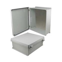 The NBN series are UL® Listed rugged weatherproof enclosures featuring two non-metallic hinges and a continuous gasketed lid secured by two stainless steel captive screws that ensure optimal integrity. Constructed from molded halogen free self extinguishing fiberglass reinforced polyester (FRP), they are well suited for both indoor and outdoor applications in high temperature or corrosive environments. The NBN161406-KIT includes a Blank Aluminum Mounting Plate permitting free form layout of equipment. The Enclosure and Mounting Plate combination is ideal for custom applications. Mounting stand-offs inside the enclosure are used to secure the Mounting Plate. 特征