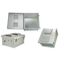 Start with the Box... The box is a rugged 18" x 16" x 8" weatherproof enclosure that is ideal for both indoor and outdoor applications. Constructed from molded fiberglass, it is well suited for high temperature or corrosive environments. The mounting flange allows it to be wall mounted as well as on a flat surface. The box can also be pole mounted with the optional pole mounting hardware kit. The fully gasketed lid features a stainless steel continuous hinge and stainless steel quick release latches with padlock hasps. The enclosure material is UV stabilized and comes in machine tool gray. The enclosure also features holes for mounting Lightning Protectors or Connectors, a grounding lug and ½" cable conduit connector. Due to the large size of this enclosure, it can accommodate dual sets of most access points. Mounting Plate The aluminum mounting plate has provisions to mount WLAN equipment from Cisco®, Symbol®, D-Link®, HyperLink and more. With the optional HGX-AMOUNT02 bracket a wide array of HyperLink Power-Over-Ethernet products and Power Supplies can be mounted as well. Two of these brackets can be mounted side by side. Also available is the HGX-NMOUNT03 Universal Mounting Shelf that can be attached to the mounting plate and can accommodate additional equipment to be placed in the enclosure. The mounting plate is wired for 0 to 60 VDC operation. It is ideal for use with 12 VDC Solar Powered applications, Battery Back-Up applic 特征