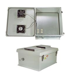 The NB201611-1HF is a rugged weatherproof enclosure that is ideal for both indoor and outdoor applications. Constructed from molded halogen free self extinguishing fiberglass reinforced polyester (FRP), it is well suited for high temperature or corrosive environments. The integral mounting flange allows it to be wall mounted as well as on a flat surface without the need for extra mounting hardware. The fully gasketed lid features a stainless steel continuous hinge and stainless steel quick release latches with padlock hasps. The light grey color of the NB201611-1HF is cleaner, cooler and aesthetically pleasing. Users can enjoy the physical benefits of better heat reflection and better UV resistance due to the lighter color. The contoured body provides an attractive and contemporary appearance. Due to the large size of this enclosure, it can accommodate dual sets of most access points. 120 VAC Mounting Plate with Lightning Protection The aluminum mounting plate features standard surge protected duplex 120 VAC outlets and a terminal block for easy hook up to the externally provided line power. Hot and Cold Environments To help ensure trouble-free operation of electronic equipment, proper operating temperatures inside an enclosure needs to be maintained. With the built-in Heater and Cooling system, internal temperatures can be better maintained. This model is ideal in Hot and Cold environments. The NB201611-1HF includes two thermostat-controlled 200W (400W total) heaters. Each 200W heater is controlled by its own thermostat. The heaters turns on when the internal temperature drops to 40° F (4° C) ±7° and turns off at 60° F (15° C) ±5°. The heaters do not require the use of any of the AC outlets, leaving them all available for your equipment. No extra room for the heaters is required since it is mounted underneath the plate. For cooling, the two thermostat-controlled 12W (24W total) high airflow, low noise fans used allows air to be pushed or pulled through the enclosure. Filters for both ports are easily removable for cleaning and replacement. The fans turn on when the internal temperature rises to 120° F (49° C) ±5° and turns off at 90° F (32° C) ±10°. Like the heaters, the cooling fans do not require the use of any of the AC outlets, leaving them all available for your equipment. Optional Pole Mounting Kits Available on the L-com web site, these optional kits allows the enclosure to be mounted on poles ranging from 1.2 to 11 inches in diameter. For additional information and complete specifications, click on the data sheet in the Downloads tab. 特征