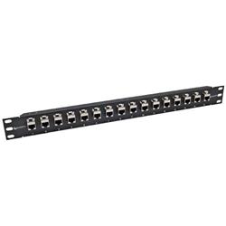 High speed network patching is made easy with L-com's keystone patch panels. L-com's unique right angle shielded keystone couplers are pre-installed into standard 19" rack panels providing an easy method for coupling up to 16 category 6 grade patch cables on a rack. The shielded couplers provide protection against unwanted EMI/RFI emissions. These unique right angle keystone couplers are designed to address tight fit applications. Panels have a black powder coat finish for durability and each port is numbered to simplify cable organization and tracking. Larger volume quotations are available; Contact us today! Optional cable management bracket PR-CMB available (sold separately). Same day shipping on most items; Order online today! 特征