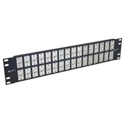 Secure mounting of category 5E couplers has never been better. L-com's exclusive flange mount couplers pre-installed into standard 19" rack panels provide the best method for coupling up to 32 category 5E grade patch cables on a rack. The metal flange is attached permanently to the panel with two 4-40 screws. Panels have a black powder coat finish for durability and each port is numbered to simplify cable organization and tracking. Both shielded and non-shielded versions are offered to fit individual applications. Larger volume quotations are available; Contact us today!