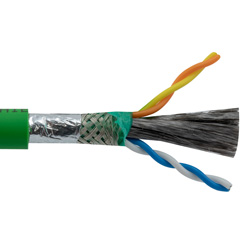 超5类散装Profinet线缆,SF/UTP双屏蔽,2对,22AWG实心,工业级户外PLTC TPE护套,绿,1000英尺(304.8米)