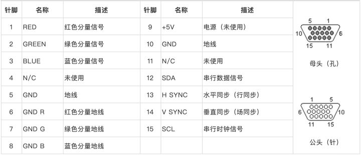 二、VGA接口的针脚定义