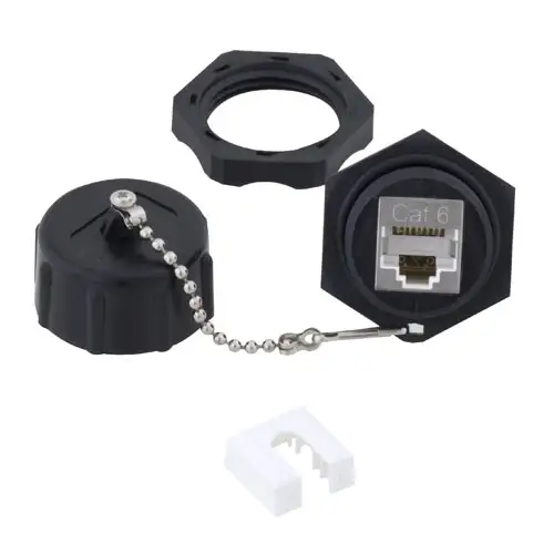 螺纹配接方式确保紧密牢靠的密封效果,而且安装时无需使用五金工具。符合PoE+标准(满足IEEE 802.3和IEC 60512-99-001对带电插拔的性能要求)。该款耦合器设计为在非使用状态下通过以防尘帽(随附防尘帽和挂绳)盖紧而达到IP67防护等级,无需特殊的配接组件。