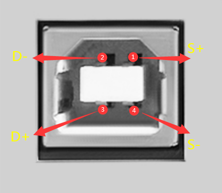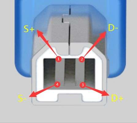 备注:S+、S- 代表:电源线正、负。D+、D- 代表:数据线正、负