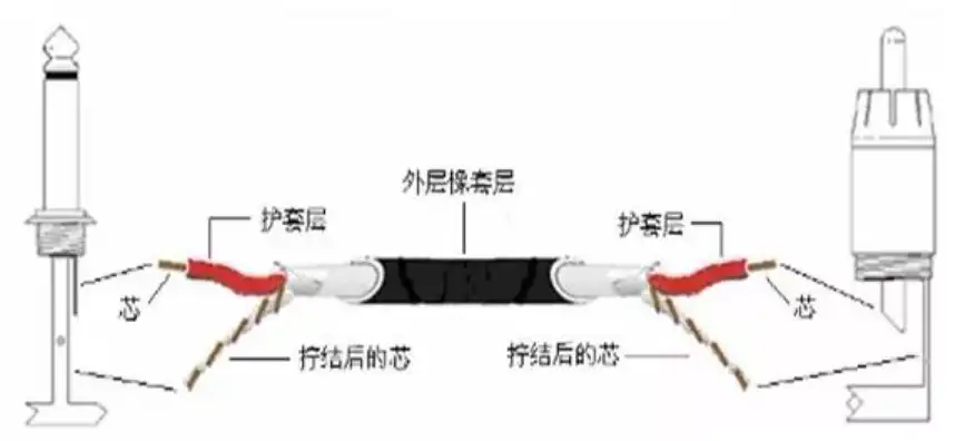 由于大二芯和莲花头都是两芯的结构(非平衡),话筒线或音频连接线包括屏蔽层共有三个芯,因此在刨线时就与卡侬、大三芯(平衡)的线材有所不同。
