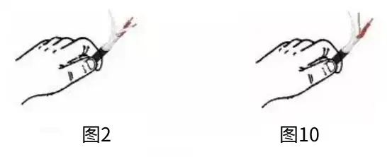 线材剥好后将去除护套的芯线和屏蔽层拧结在一起(图11),拧结时应拧得结实些尽量不要松散。拧结好的线材形成了两芯的结构。线材拧结的目的是将三芯(两根芯线和一根屏蔽层)改为两芯(图12),以便和两芯的插头(大二芯、莲花头等)焊接。