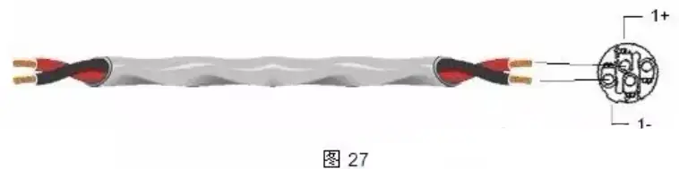 音箱线的另一端的剥线方法是一样的,不过线要刨得长一些然后分别将每芯拧扎结实。在剥线较短的一端安装“NEUTRIK”插头。安装点位参看图27。