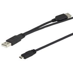 USB external hard drive cable that provides power and data. This 3-foot USB A to Micro B Y-Cable provides 2 USB 'A' Male connectors and 1 USB 'micro 'B' Male connector, providing a solution for supporting the additional power required by some Micro USB external hard drives connected to the standard USB ports which is provided by most computers.Especially valuable in situations where a single USB 2.0 port may not offer sufficient power to external hard drives, the USB A/Micro B Y-cable can be connected to 2 ports on 1 PC, to increase the power output to the external device. In addition it provides digital data transmission for high speed data transfers.