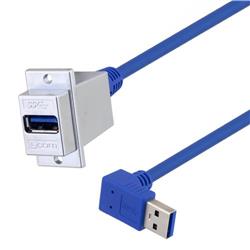 Newly designed USB 3.0 versions of our popular ECF style panel mount USB adapter cables are now available ! This series features a bulkhead Type A 3.0 jack to a molded Type A 3.0 90 degree down plug attached via USB 3.0 compliant cable. Integral to this design is a multi-layered PCB that maintains USB 3.0 speed and performance. USB 3.0 systems are up to 10 times faster than USB 2.0 - 4.8 Gbps versus 480 Mbps. The increased bandwidth substantially reduces the time required for transferring large amounts of data or video. These assemblies are fully shielded and use L-com's popular ECF504 style housing that can be used with virtually any panel thickness. The recommended 4-40 mounting screws must be purchased separately (P/N ECF440).