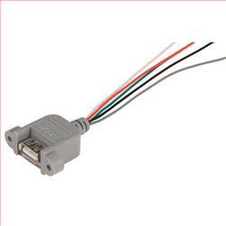 另外一个独特的USB面板安装方法使用户能灵活地配置自己的组件。它设有一个穿壁式A类插座,带24英寸非端接导线。用户可将电线切割至理想长度和硬线,或自行选择连接器进行端接。导线为24 AWG、UL类1007,包括一个连接到连接器外壳的电线。L-com可以在适度最低要求下定制端接这些引线。包括两个螺丝,以协助面板安装。